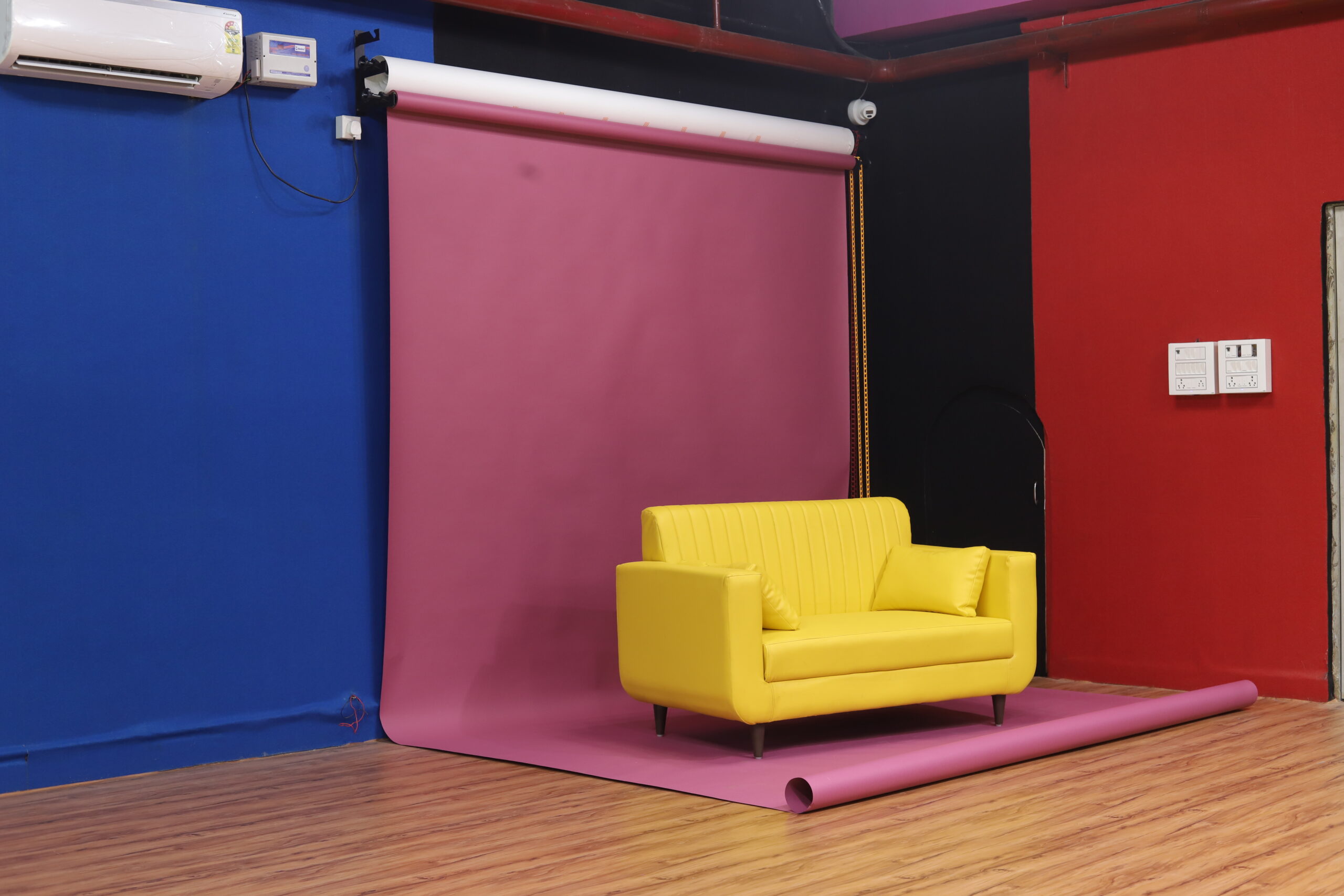 Our air-conditioned studio is thoughtfully designed to support all your requirements in terms of a photography and video recording studio in Delhi. We offer 2000 square feet of open pillar-free studio space for rent designed with thoughtful care to provide space to set up your production, build sets, and host workshops.